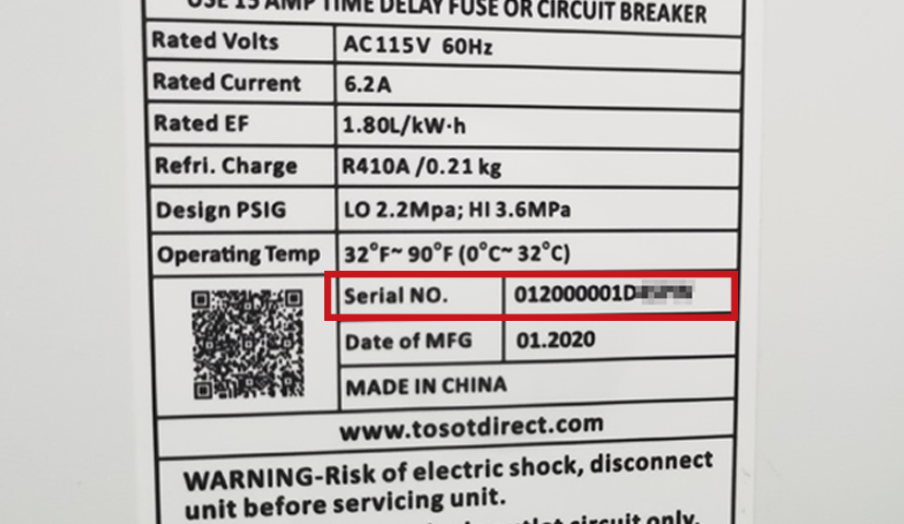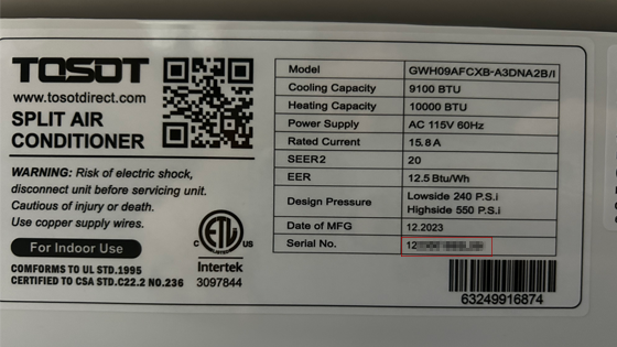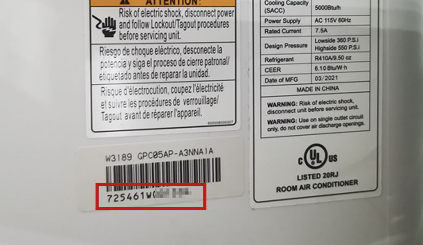 *Please input the outdoor unit serial number on the warranty/registration form.