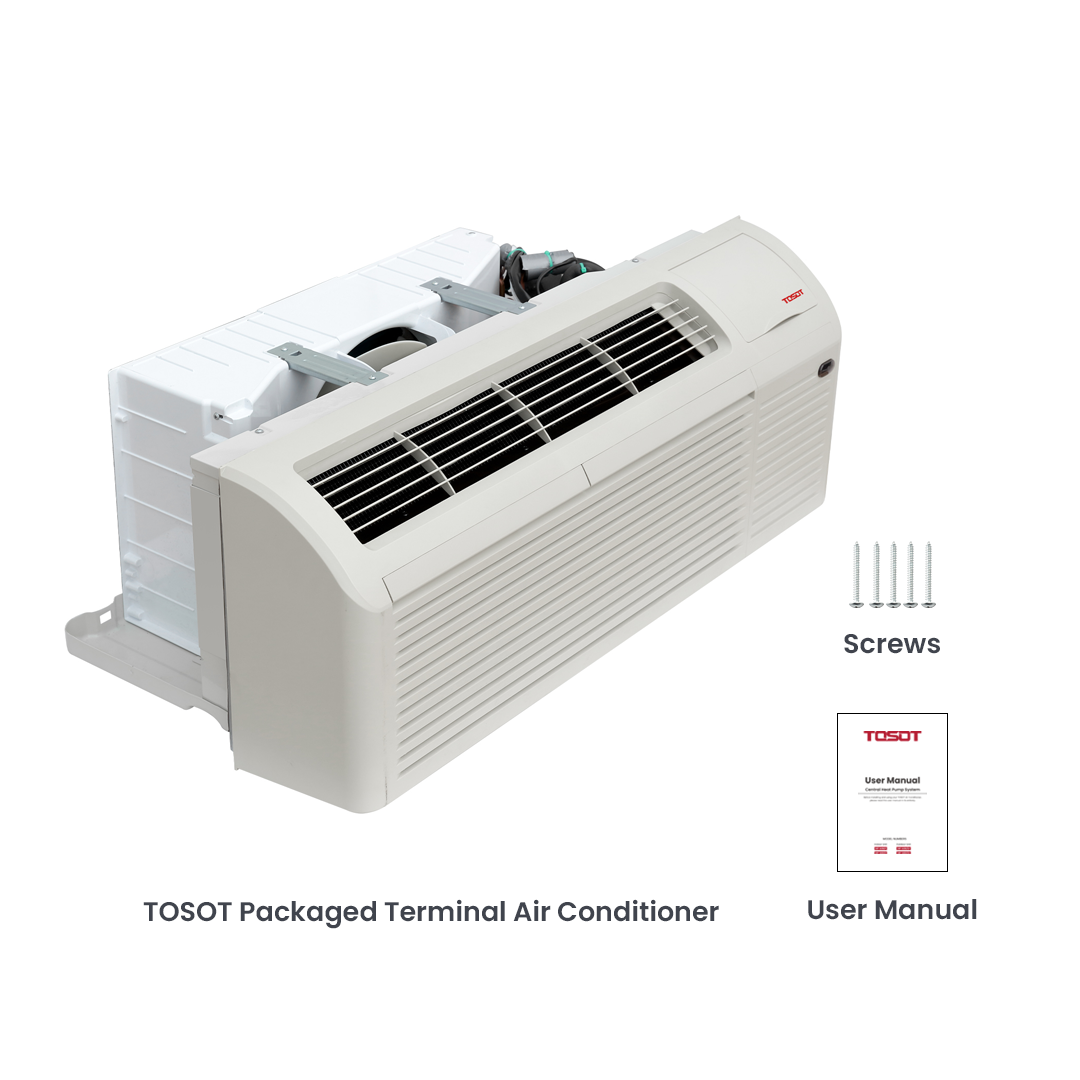 The TOSOT PTAC Packaged System features high efficiency with an above-average level of EER and COP ratings. This model provides easy control methods either via the control panel or through third-party 24V wall thermostats for optimal temperature settings. Instead of installing an entire HVAC system, the ease of installation and absence of ductwork makes it a cost-effective choice for heating and cooling options in hotels, hospitals, senior residential facilities, apartments, and residential add-ons such as sunrooms.