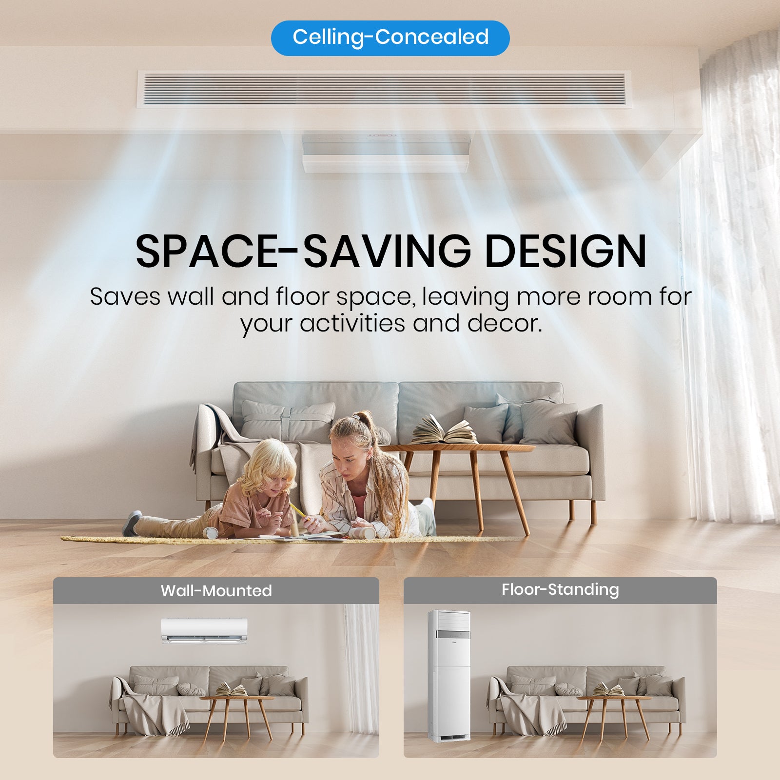 Suitable for open layouts & large home spaces.