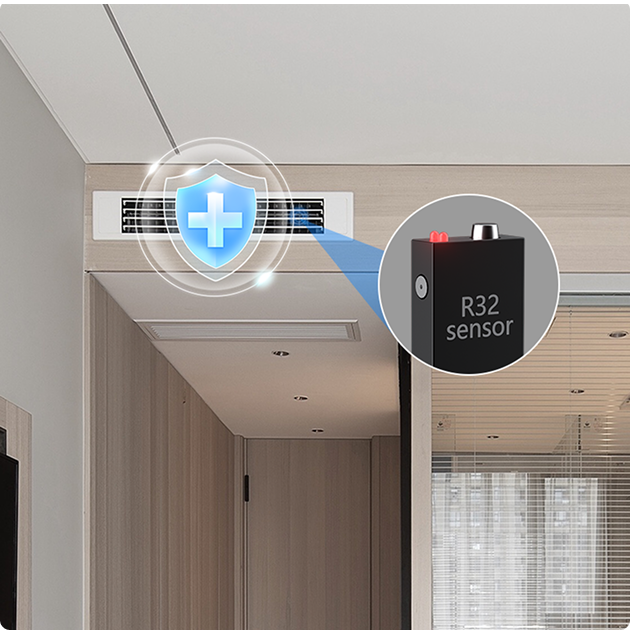 A built-in detector monitors indoor refrigerant concentration levels in real time. If a leak occurs, it triggers an alert on the wired controller, warning you of potential hazards. It helps prevent exposure to refrigerant gases and allows for prompt maintenance.