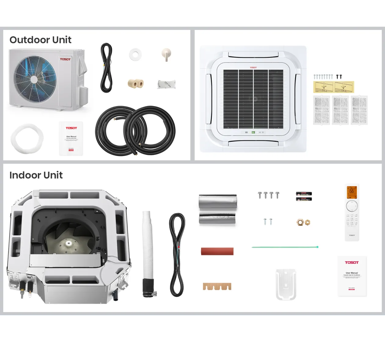 A basic installation set is included, and the standard copper line set length is 16 ft. If you need a longer line set, please contact us at support@tosotdirect.com for more details.