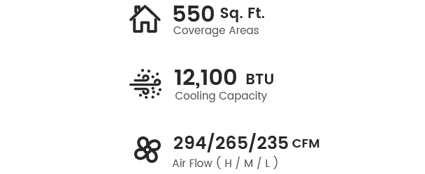 | Cooling BTU | 12,100 | Est. Cooling Area (Sq. Ft.) | 450 |