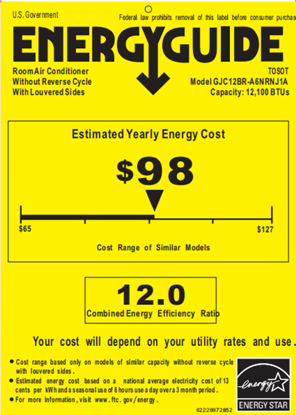 * Estimated annual energy cost is based on a national average electricity cost of 13 cents per kWh and seasonal use of 8 hours a day over a 3-month period. Your final cost will depend on your utility rates and actual uses.