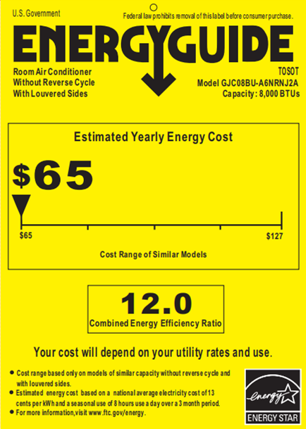 During energy-saving mode, TOSOT tranquility window AC will enter an automatic mode to save energy costs for you. Energy Star certification verifies that this unit uses less energy with an estimated yearly energy cost of only $65.