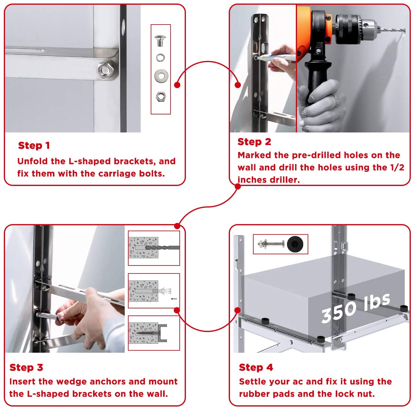 Mini Split AC Condenser Wall Mount Bracket -Max Support 350 Lbs